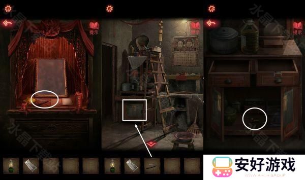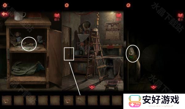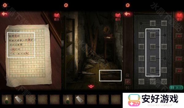 11、圈出来的字解开地面机关密码:漫情相离,下去是一个地下室。