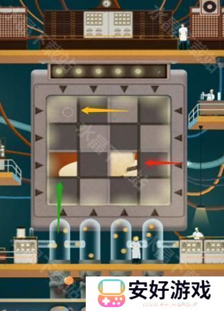 6、最后一关第六关也是三张图,选择的顺序是红、绿、黄,第一张图位置为第3行第3列,第二张图位置为第3行第1列,第三张图位置为第1行第1列。