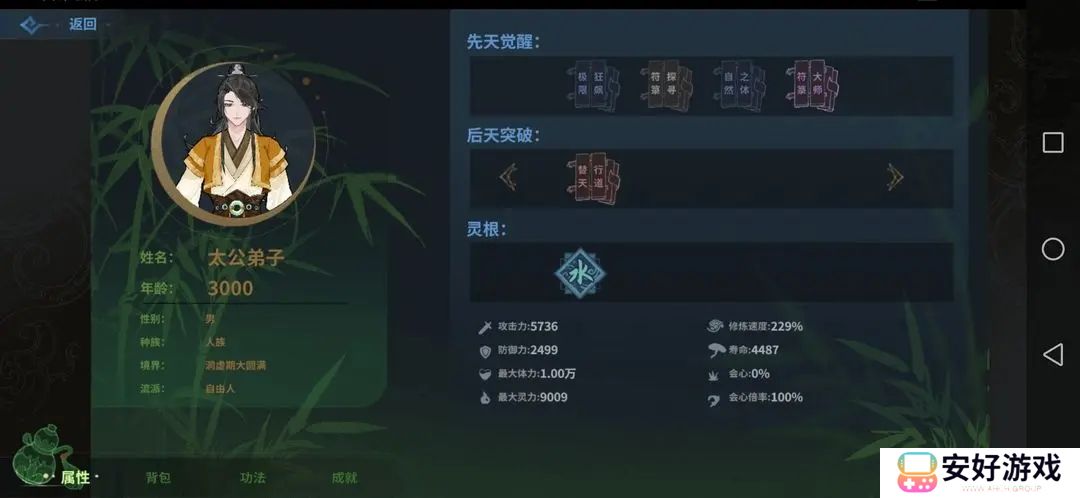 2、先考虑实用价值类天赋,比如法宝必是哪个属性那个(除非灵根大于3)。