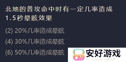 四北地羁绊效果为:普通攻击时30%的对敌人造成1.5秒的眩晕效果(如下图所示)