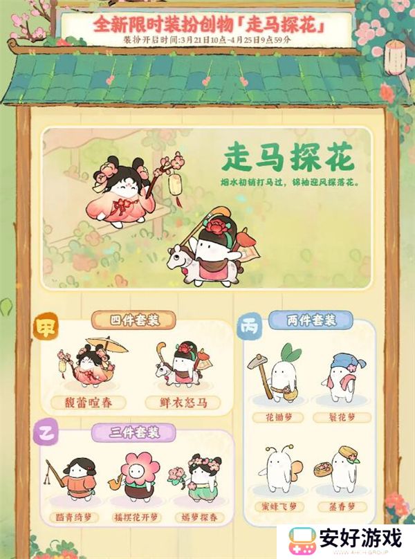 2、「走马探花」小萝卜限时装扮创物池。