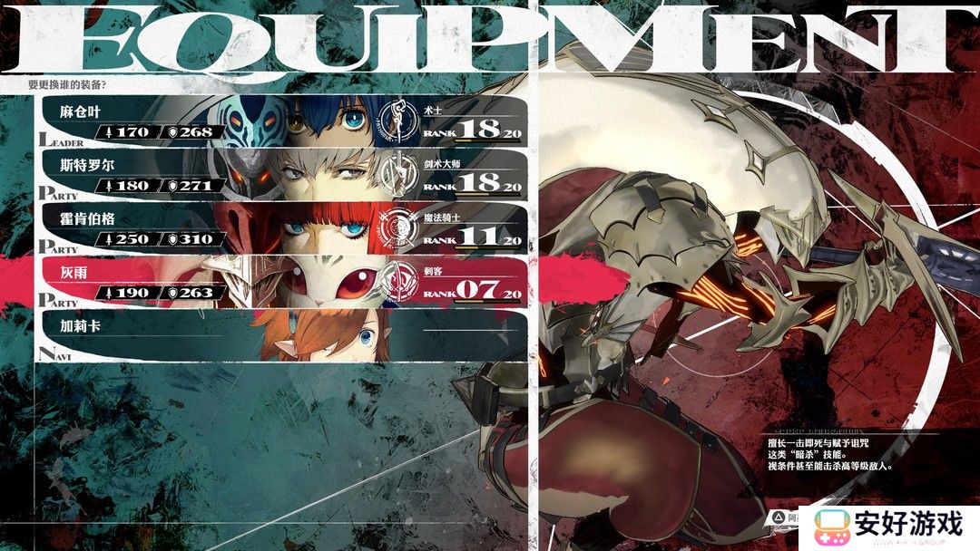 职业的解锁大多是需要与对应的角色建立羁绊之后解锁,与该角色提升羁绊等级后,还可解锁进阶职业。比如与队友斯特罗尔建立羁绊后,即可解锁剑士,当羁绊加深后,剑士可以进阶为「剑术大师」,最终成为「武士」,获得更加强劲的技能的同时,当然也不了忘了ATLUS那套继承系统,挑选有需要的技能加入到当前技能组中,发挥当前角色的最大战斗力。