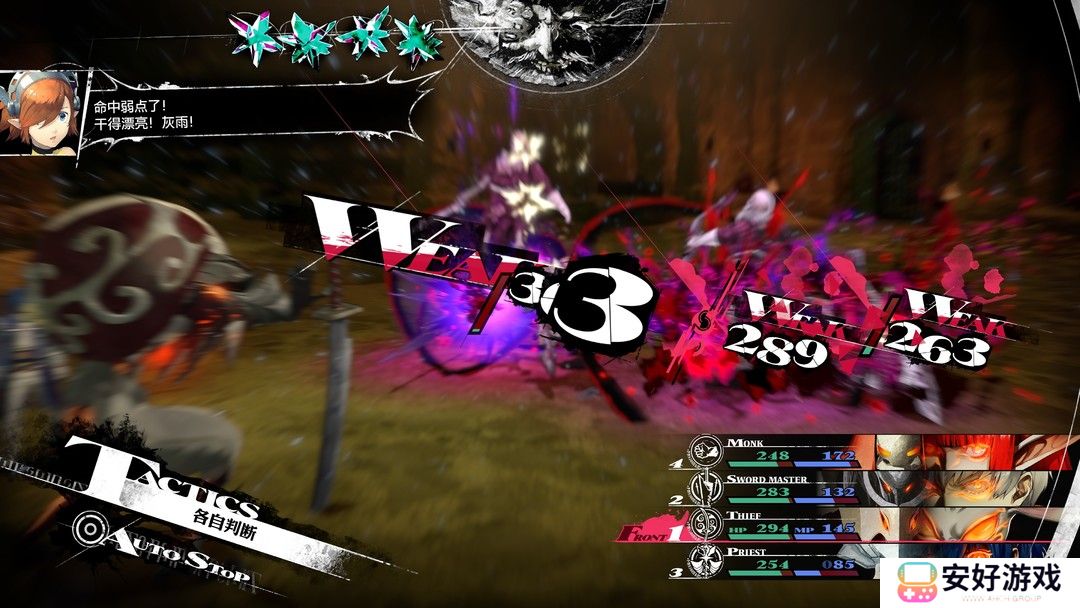 攻击属性分为物理的斩(刀剑类)、突(长枪、弓箭)、坏(棍棒),魔法的火、冰、雷、风、光、暗共计9大属性。大部分角色也会有以上属性的弱点和抵抗。我们特地针对难度进行了测试,弱点对战斗的影响相当巨大,即使是在最简单的模式中,如果全员在BOSS战中没有对应弱点,那么战斗的难度会直线飙升,消耗大量战斗资源。再加上游戏中严格的限制了魔法补给药水的获取,非常考验玩家对法力值的使用规划,在高难度下更是如此,稍有不慎就只能回城补给,错过攻略BOSS的时机。
