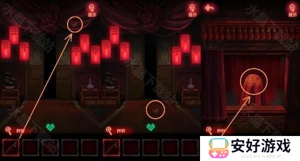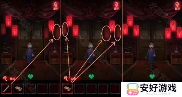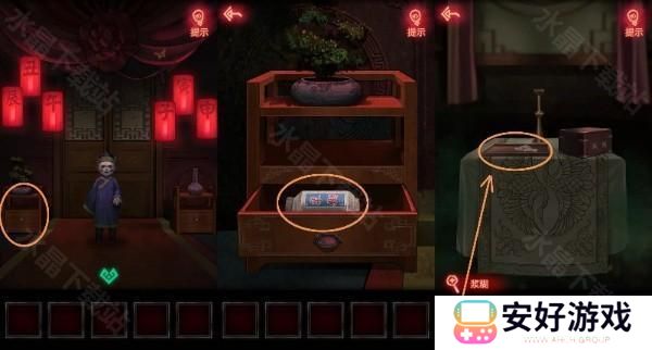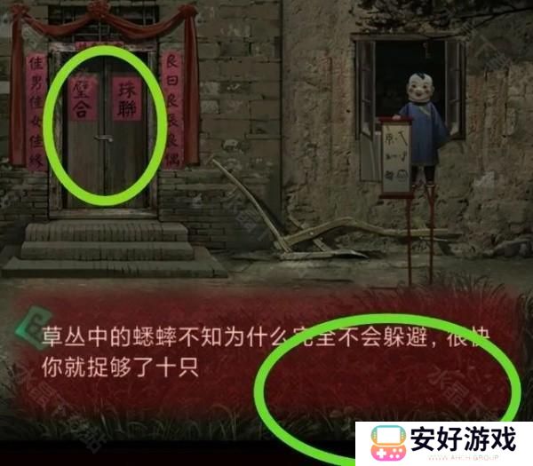 11、我们用密码打开门,把道具装水井上。查看灯笼线索,粉方框缸内有虫子。