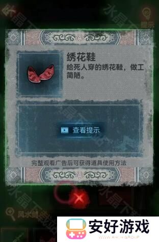 10、打开大门后我们进去在墙上获得**剑,回棺材那,用**剑剪开红绳即可获得绣花鞋。