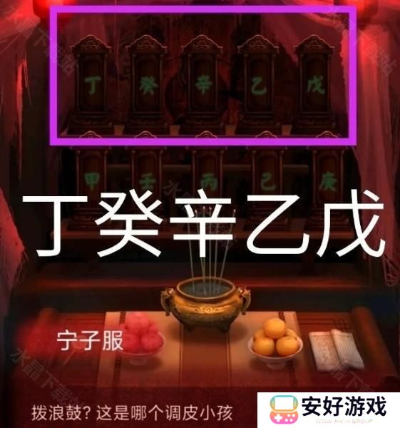 3、我们根据墓碑线索和书本提示排列灵位,顺序:丁、癸、辛、乙、戊。