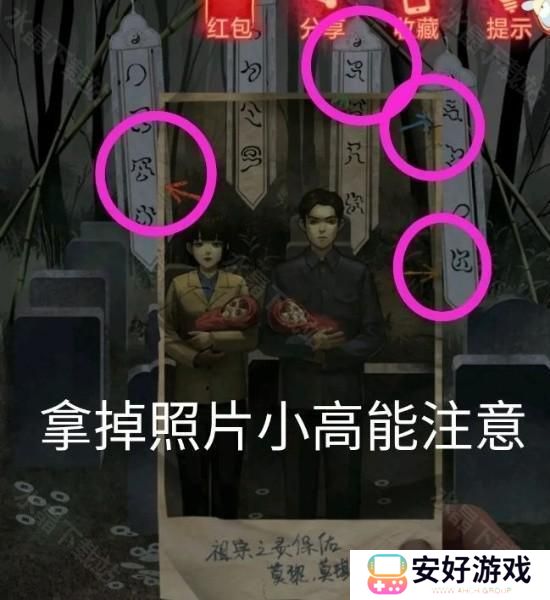 15、我们前往墓碑查看照片,按照箭头指示获得四位神秘符号。