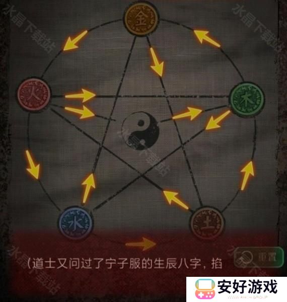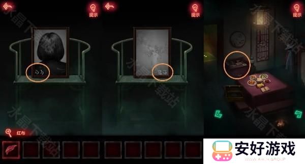16、我们回到院中水井,更改轮盘(除红色均为正确,最后更改红色即可)。获得灵位旁照片。