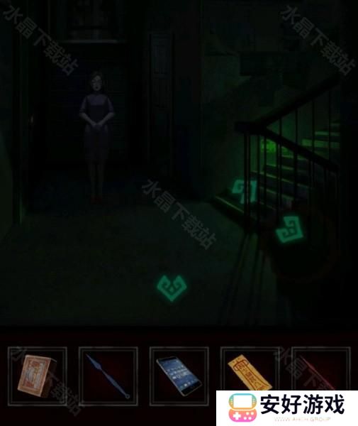 8、我们完成小游戏获得手机,在楼道内拿手机看老人,选择老人没挡住的路走。在三楼门上撕下门神。