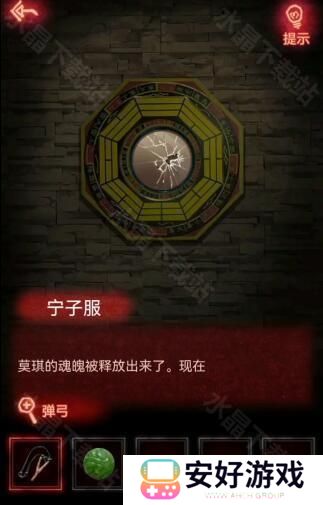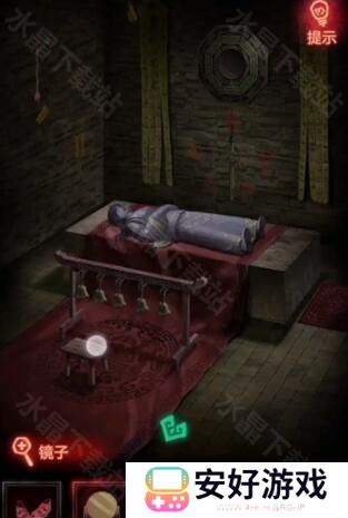 16、最后我们到娘子身体房间点击八卦镜,用弹弓点击镜子打碎,再点击铃铛,重新开始招魂,点击铃铛过剧情游戏就到这里完结了。