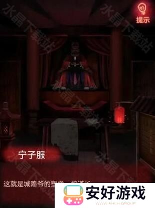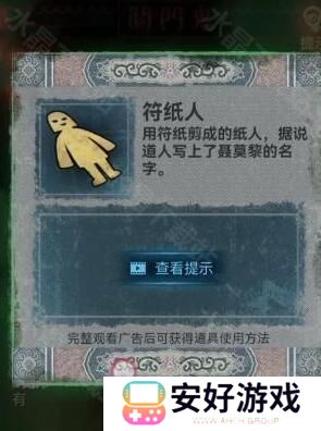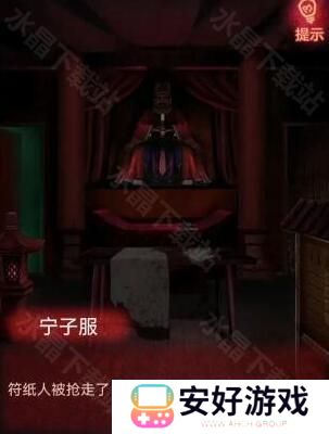 11、我们到城隍庙左门,拿令牌获得提示,根据提示调整时钟即可获得符纸人,我们按步骤把符纸人放中间案台上点击中间画写状子。