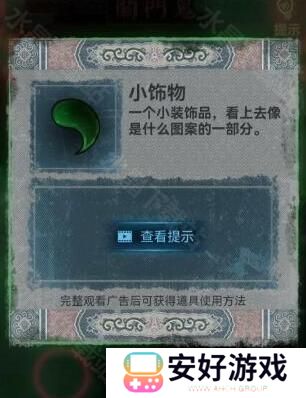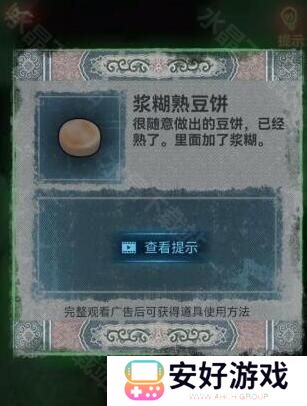 15、我们用香炉盛水点击锅,放入水和生豆饼,点击锅盖获得浆糊熟豆饼,把豆饼给饿鬼,点击下方守护玉佩。得到毛笔桌上点击最下面盒子,把两个小饰品一起放入获得把没有齿的钥匙。