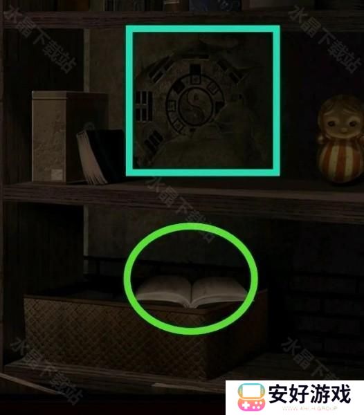 6、我们到地下室点击书架最上一层,把蓝色书放上去,在地下室灵牌前点击盒子,用磁铁开始小游戏打开整个盒子获得一个方块。