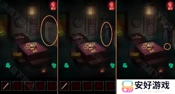 13、我们点击小铃铛开始游戏,跟娘子的灵魂走,在牌匾上获取柜子密码,点击柜子输入密码。