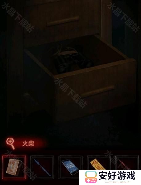 12、我们到老人门口,拿手机看女人敲门步骤。打开门获得火柴,到老人灵棚内点燃自动打开左侧柜子。