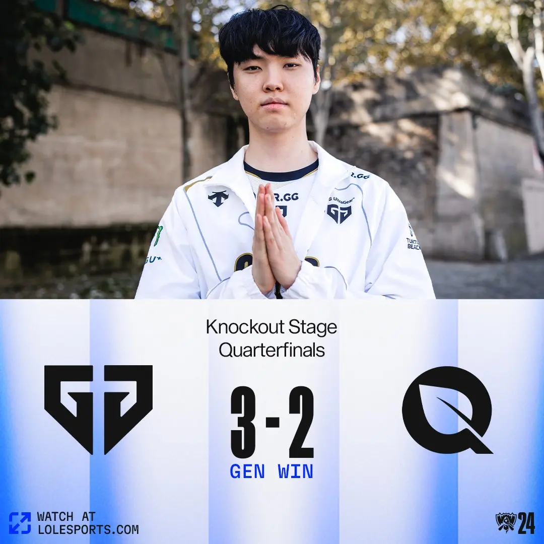 在2024全球总决赛淘汰赛中,GEN与FLY的比赛吸引了众多观众的目光。最终,GEN以3比2战胜FLY,晋级四强,并将在半决赛中与T1会师。