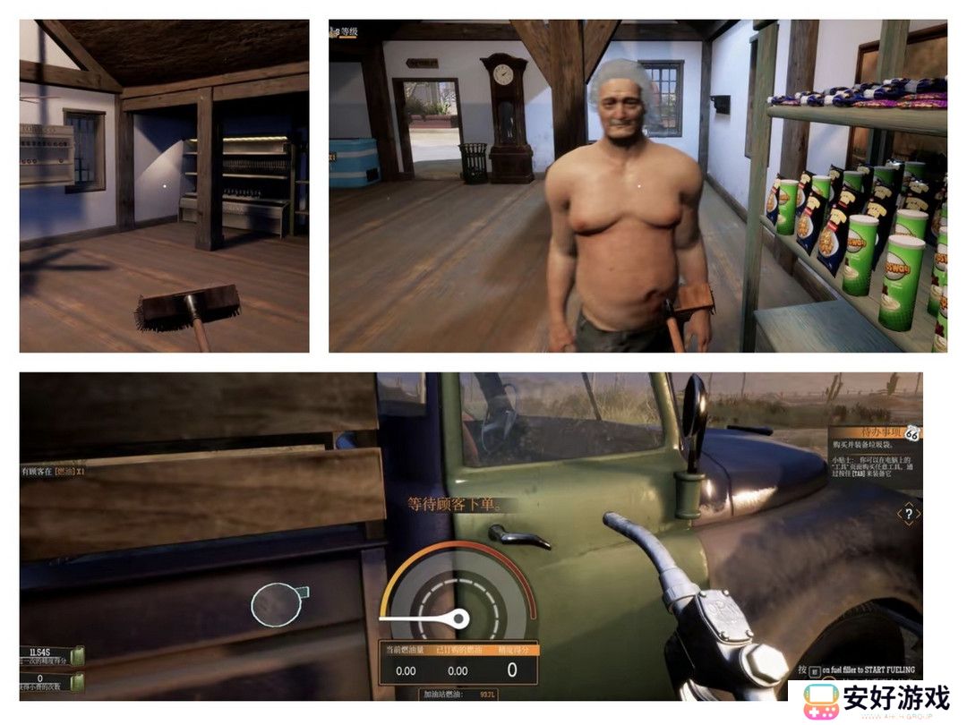 游戏中玩家盘下了一家废弃的加油站,初期只是将加油站简单清理一番,就要抓紧开门迎客了,每辆到加油站的车都要玩家自己亲自服务,就这样一点点赚钱后可以继续翻新扩建加油站,招募更多的员工,然后还可以开设便利店,上架商品进行销售,