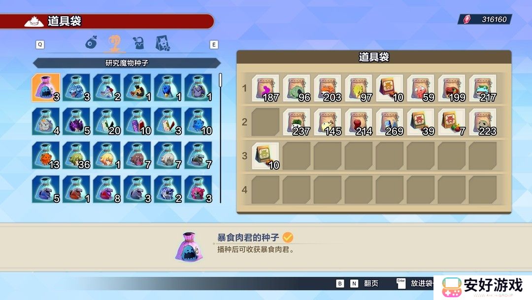 不过种田玩法有一个大问题,那就是太肝了!要知道游戏里的种子无法在商店里购买,唯一的来源就是去迷宫刷魔物,打倒魔物之后才有概率掉落相应的种子。这意味如果需要某种魔物的素材就不得不去反复刷怪,而研究面板的科技对素材的需求量非常大,一些高级魔物还只能在面板中解锁,我不敢想象把科技全解锁得花多少时间,对全成就党来说肯定是爆肝地狱了。