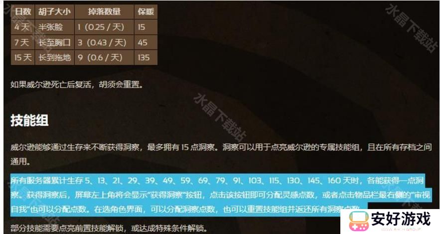 2、威尔逊能够通过生存来不断获得洞察,最多拥有15点洞察。