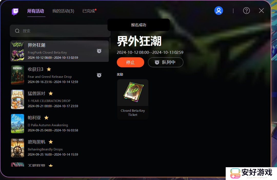 随着FragPunk封测的火热进行,玩家们对这款新游的期待也达到了顶点。不过,好游戏总是伴随着好礼,这不,今晚Fragpunk界外狂潮就将开启最后一轮twitch掉宝活动,你准备好迎接属于你的惊喜了吗?在参与活动之前,不妨先来看看这篇攻略,教你如何轻松拿到封测资格,并顺利领取掉宝奖励。