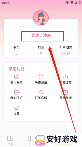 1、首先进入海棠读书app,进行登录注册;