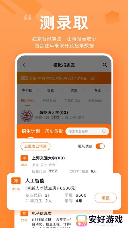 掌上高考主要功能包括:志愿填报,高考头条和专家高校在线答疑。