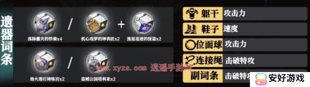 主词条躯干攻击力、脚部速度、位面球攻击力、连结绳击破特攻。