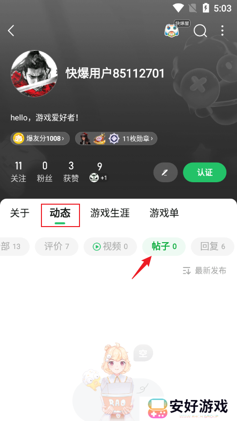 3.点击动态-帖子即可删除贴号