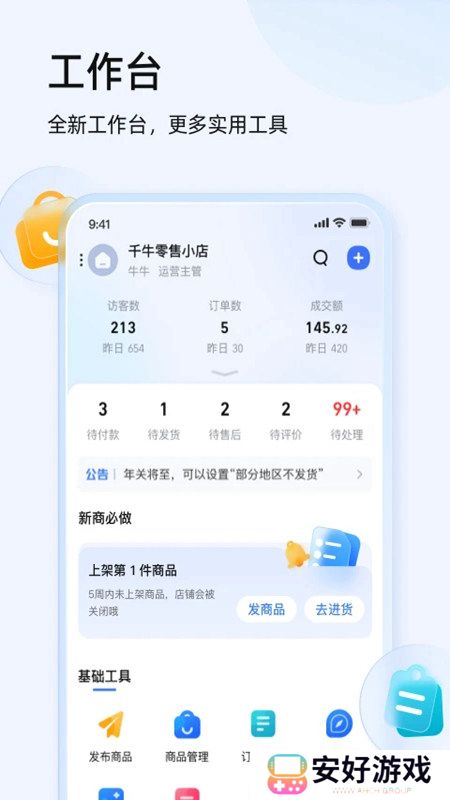千牛卖家版官方手机版最新版是阿里巴巴官方推出的一款卖家移动工作台适用于淘宝,天猫等平台的商家使用,在千牛app上卖家可以获取商品的所有消息和买家的消息还有提供店铺的关键数据等功能,还是很不错的哦!