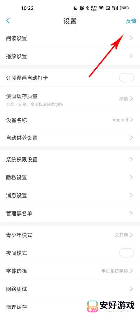 3、来到设置功能中,选择第一个阅读设置,然后进入;