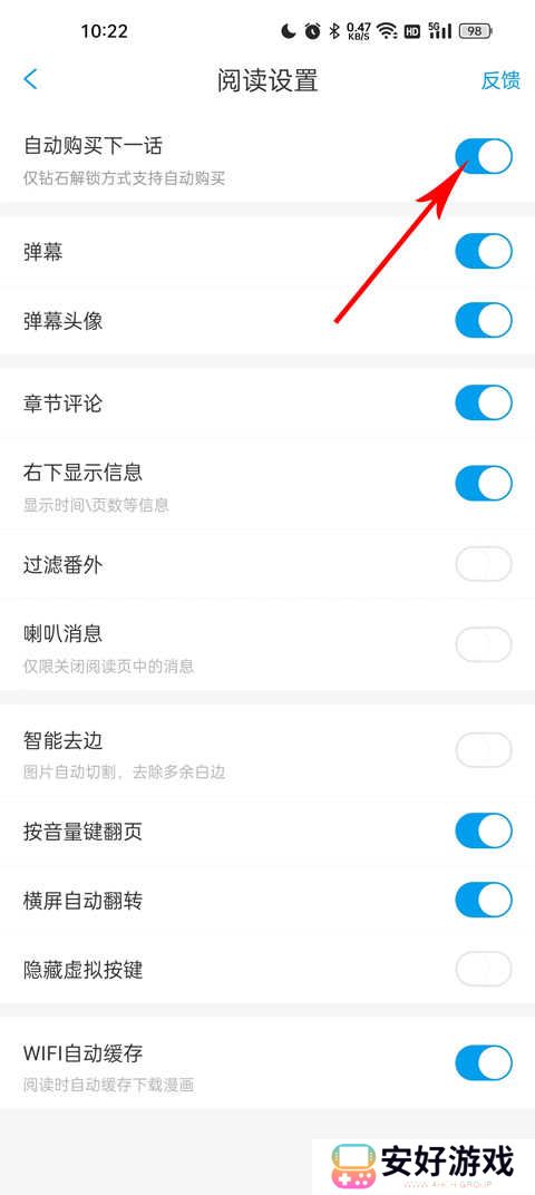 4、在阅读设置中,将自动购买下一话进行关闭,就可以取消自动续费功能了。