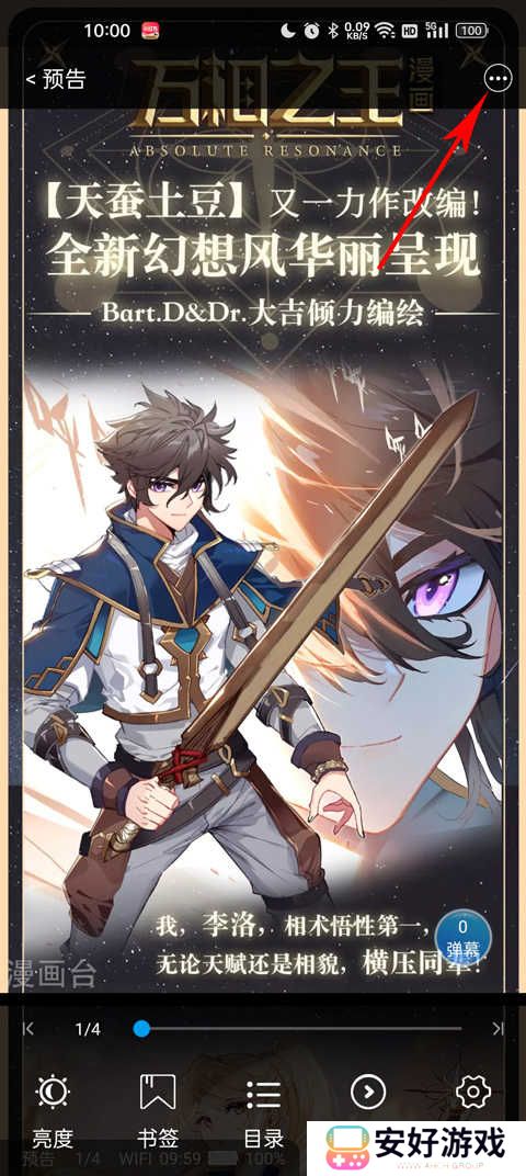 3、进入动漫之后,点击屏幕的正中间会出现亮度、书签、目录、自动、设置等功能;