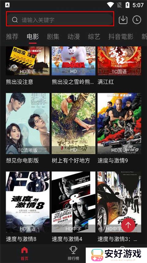 2、输入您想观看的电视剧或电影的关键字,然后点击搜索。