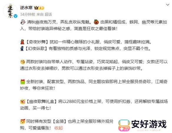 1、2024年10月31日更新后【奇夜妙舞/幻夜纵歌】时装礼盒幽夜歌舞礼盒将上架商城;