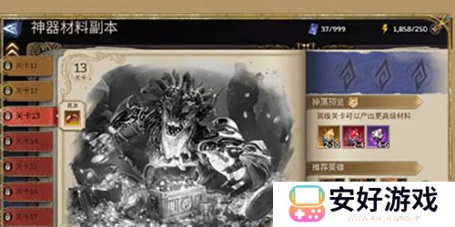6、神器材料副本共有18个关卡,通关每个关卡都能固定获得秘银和1-2种陨星。