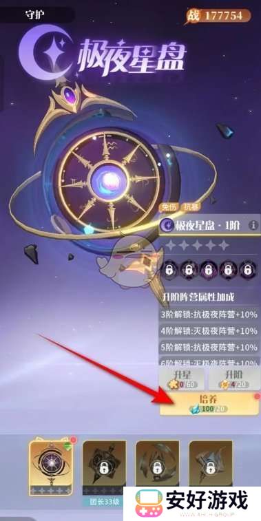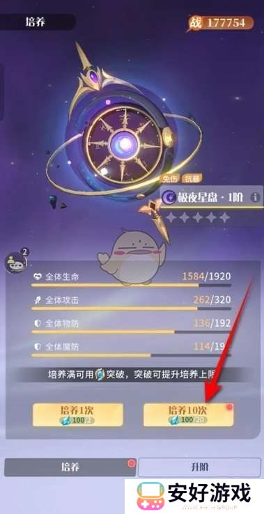 4、最后点击培养1/10次,即可提升星盘的等级;