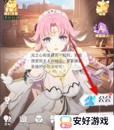 1、前往游戏主页后,点击下方的公会玩法前往;