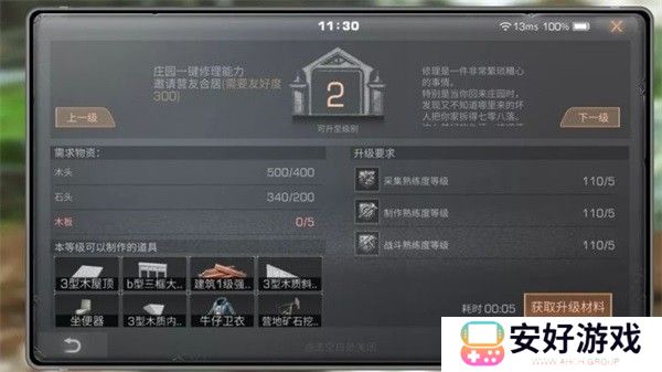 庄园是最后几天最坚实的避难所,庄园等级表示幸存者的实力。首先,要升级庄园,你需要有足够的物资,以及相应的熟练程度要求,这些物资可以通过收集和制作获得,也可以通过快乐101交易摊位购买。