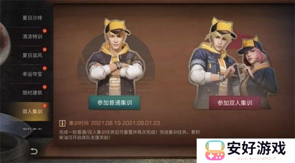 当幸存者庄园等级达到2级时(即采集、制作、战斗等级为10级),就会解锁集训入口,幸存者可以选择普通集训和双人集训,两种任务完成条件不同,获得奖励相同,任务简单,还可以获得大量熟练度噢。