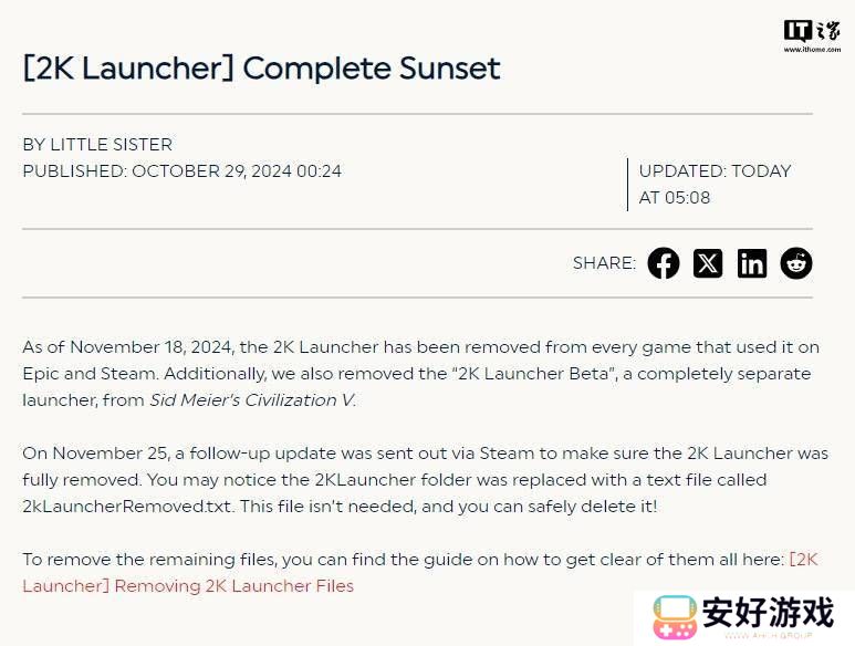 为了彻底告别2K启动器,2K Games已在Steam平台上推送了一项特别更新,旨在移除与启动器相关的所有游戏目录文件。曾经安装过2K启动器的玩家会发现,原本存放启动器的文件夹现在仅剩下一个名为“2kLauncherRemoved.txt”的文件,该文件也可以手动删除,以便进一步释放存储空间。