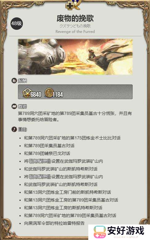 2、等级48级后去该npc处接取任务【**的挽歌】;