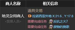 3、最后去拉诺西亚外地(21.6.17.8)找【地灵杂用商人】花25000金币购买【地灵娃娃】即可。