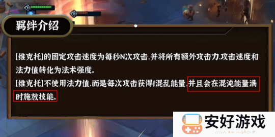 维克托则以其独特的技能和羁绊效果,有望成为云顶之弈史上最强的六费英雄之一。他的羁绊能将额外的攻击力、攻速和法力值转化为法术强度,并使用混沌能量替代法力值。他的主动技能是将普攻替换为死亡射线,对直线上的敌人造成伤害并降低其护甲和魔抗。当混沌能量充满时,维克托将释放大招,击飞所有敌人并造成基于他们最大生命值的魔法伤害。
