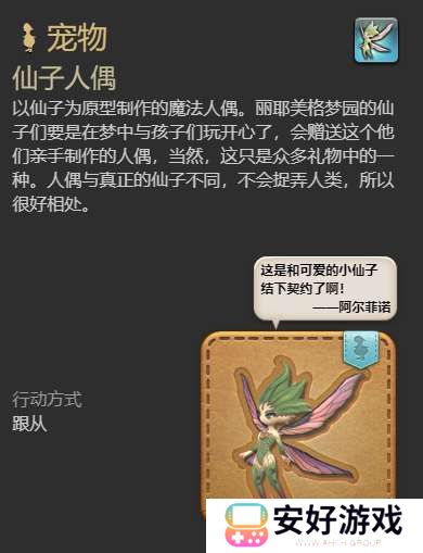 最终幻想14仙子人偶十分乖巧,不会捉弄人类。有玩家不知道仙子人偶宠物怎么获得?它是要去伊尔美格 X:12.4 , Y:32.9.找到由儿·欧儿,用幻晶币兑换的,接下来就由小编给大家带来了详细的《最终幻想14:水晶世界》仙子人偶宠物获得方法!