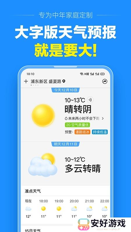 1.大字版天气预报,专为中老年用户群体定制,字大图也大