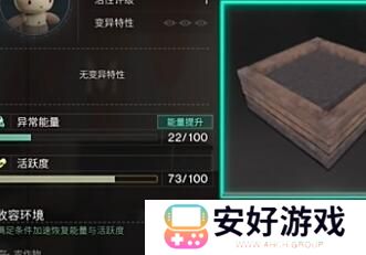 3、这个乖乖兔的收容环境是需要放在农作物的旁边,然后旁边还要有个玩具和花卉这样才能快速回复能量。
