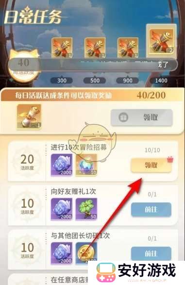 答:前往任务栏中,点击日常任务奖励进行领取即可