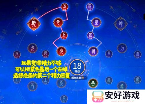 2、精力不足时,可移除紫色最后一个天赋,根据情况选择绿色条的第二个精力回复。