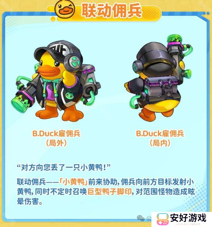 向僵尸开炮宣布将和B.Duck展开联动,联动期间我们可以获得联动专属城墙、联动专属佣兵和联动专属头像框、聊天框和称号。下面是小编给大家带来的《向僵尸开炮》B.Duck联动活动介绍,感兴趣的小伙伴们一起来看看吧。