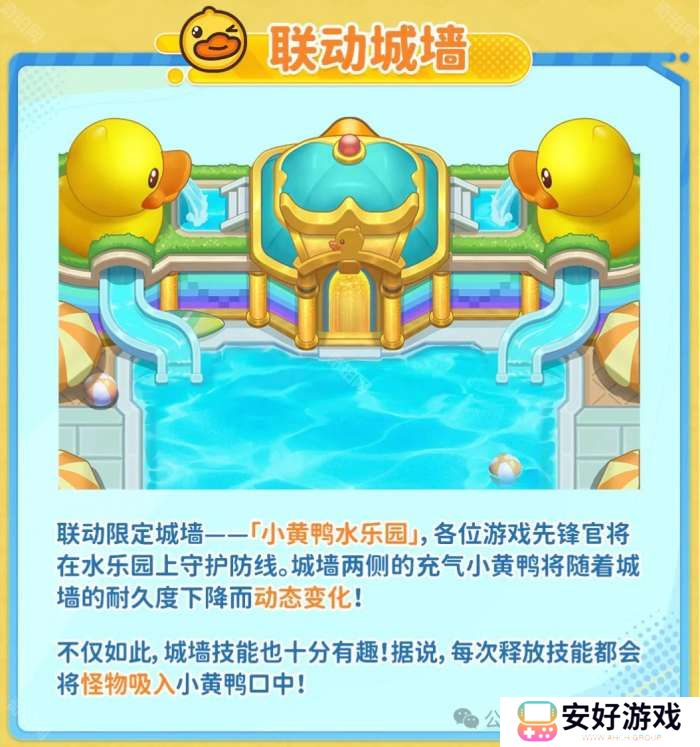 城墙两侧的充气小黄鸭将随着城墙的耐久度下降而变化